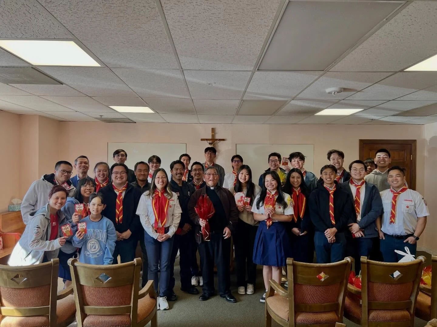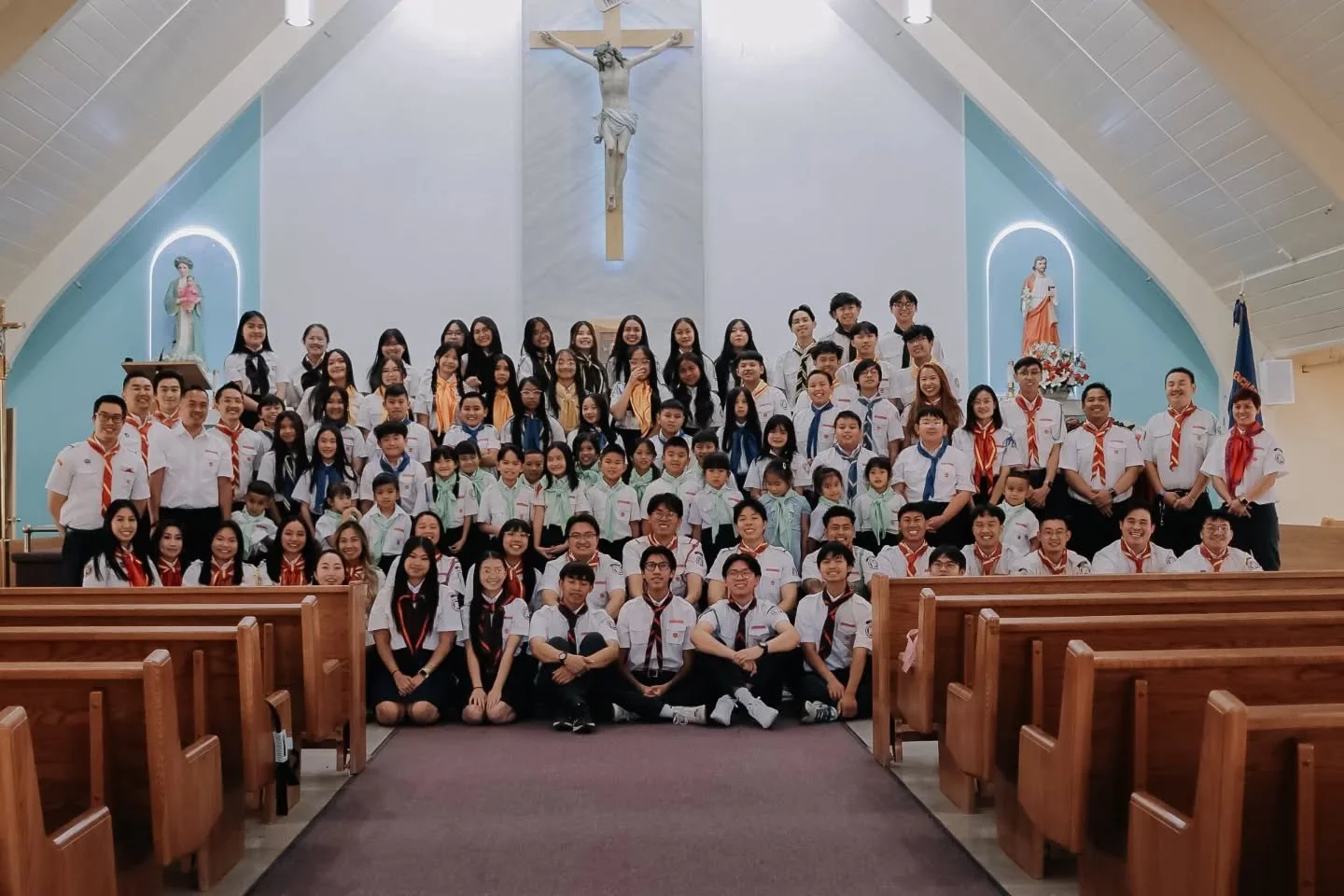 The Huynh Trưởng motto is Phụng Sự, which translates to “service”, and các Huynh Trưởng wear red, the color symbolizing love, service, sacrifice, and responsibility. They help các em grow in faith and grow closer to God.