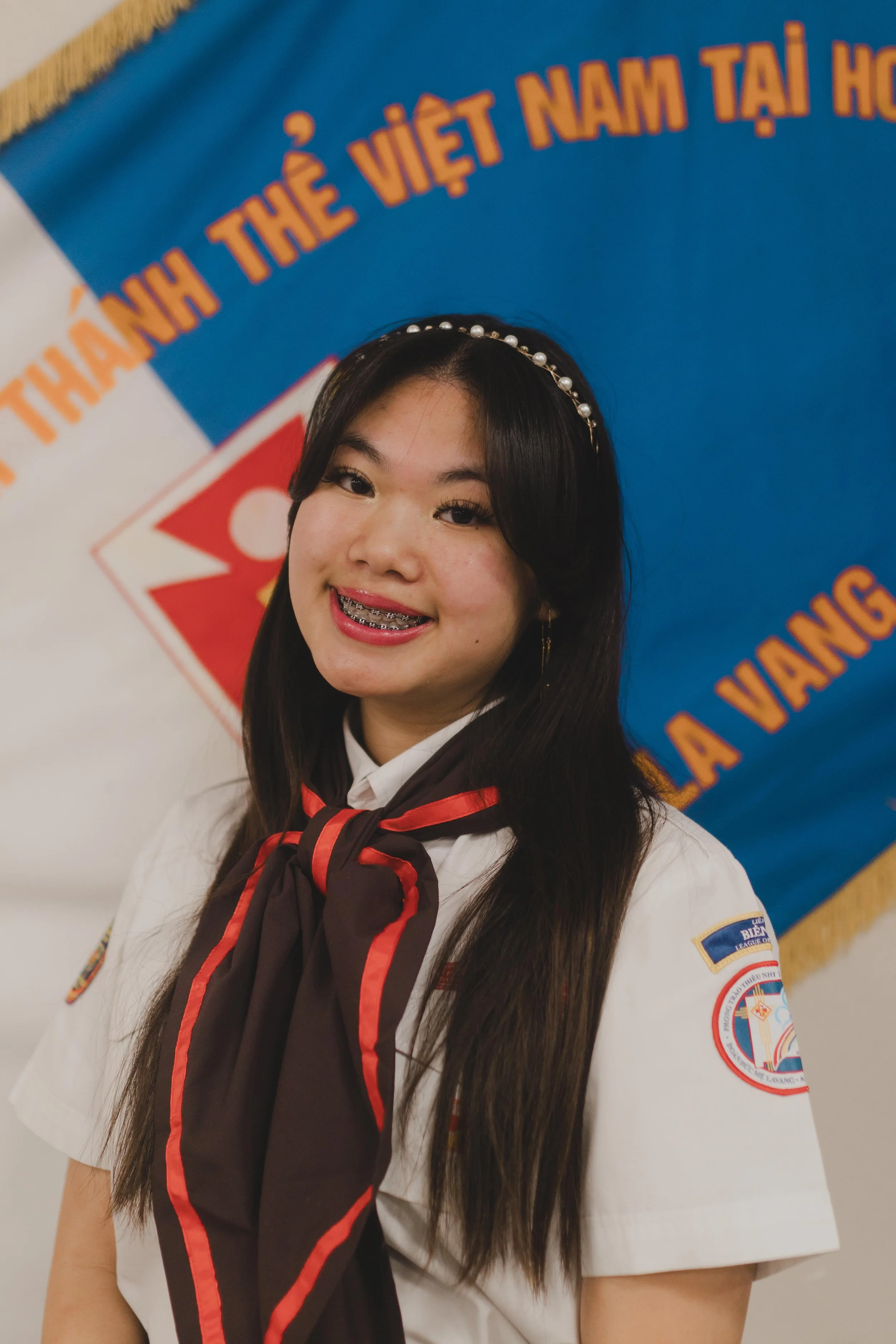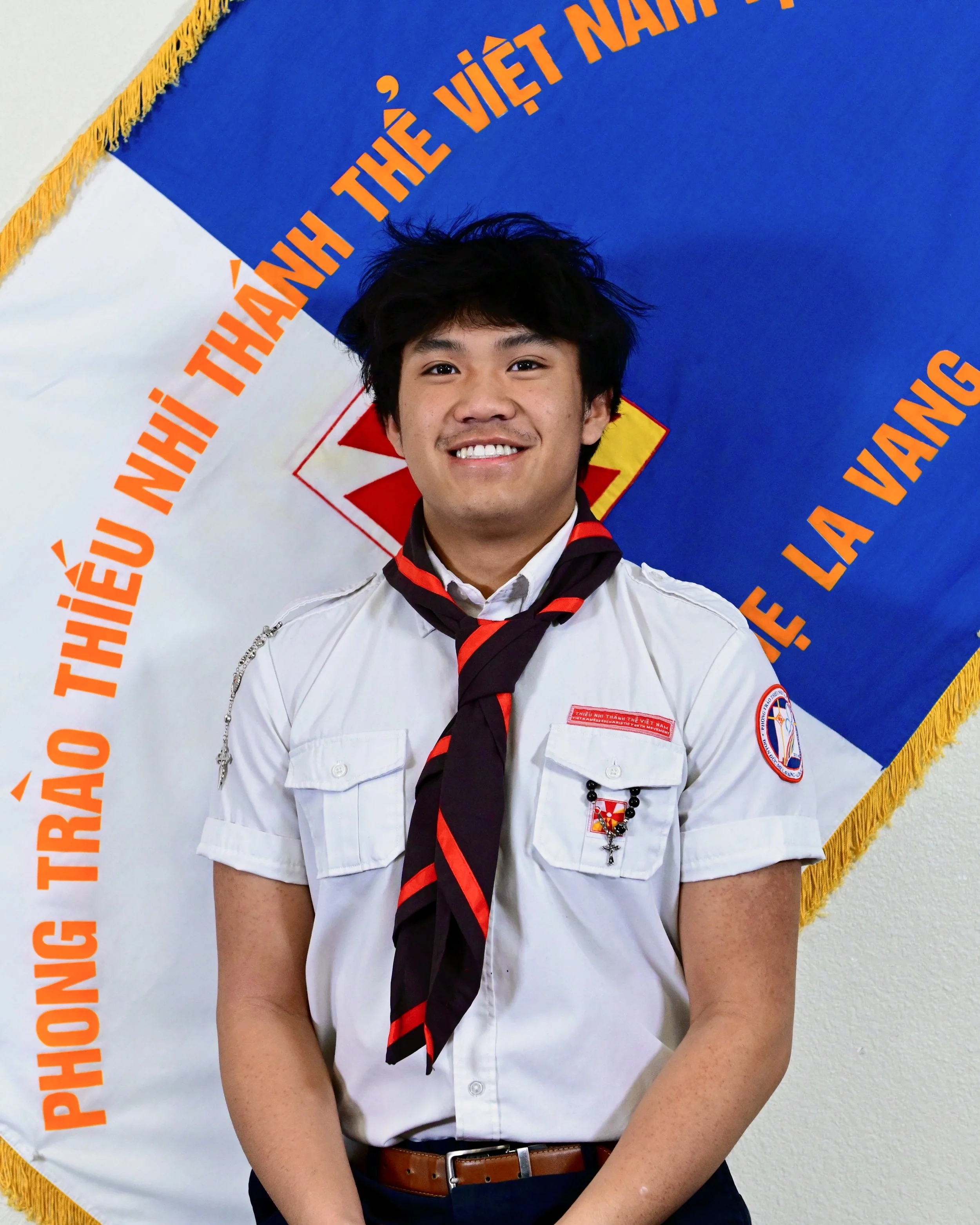 The Thiếu Nhi motto is Hy Sinh, which translates to “sacrifice”, and các em ngành Thiếu wear blue, the color of the endless sea and sky. Blue represents the vastness and the search for identity. The sea and sky is big, easy to get lost in. Các em Thiếu Nhi are aware of the physical and mental changes that are occurring in themselves and are working hard on growing up and finding their way in life. They practice sacrifice as Jesus sacrificed for us, and are taught to find their identity in solitude of prayer and accepting who they are.